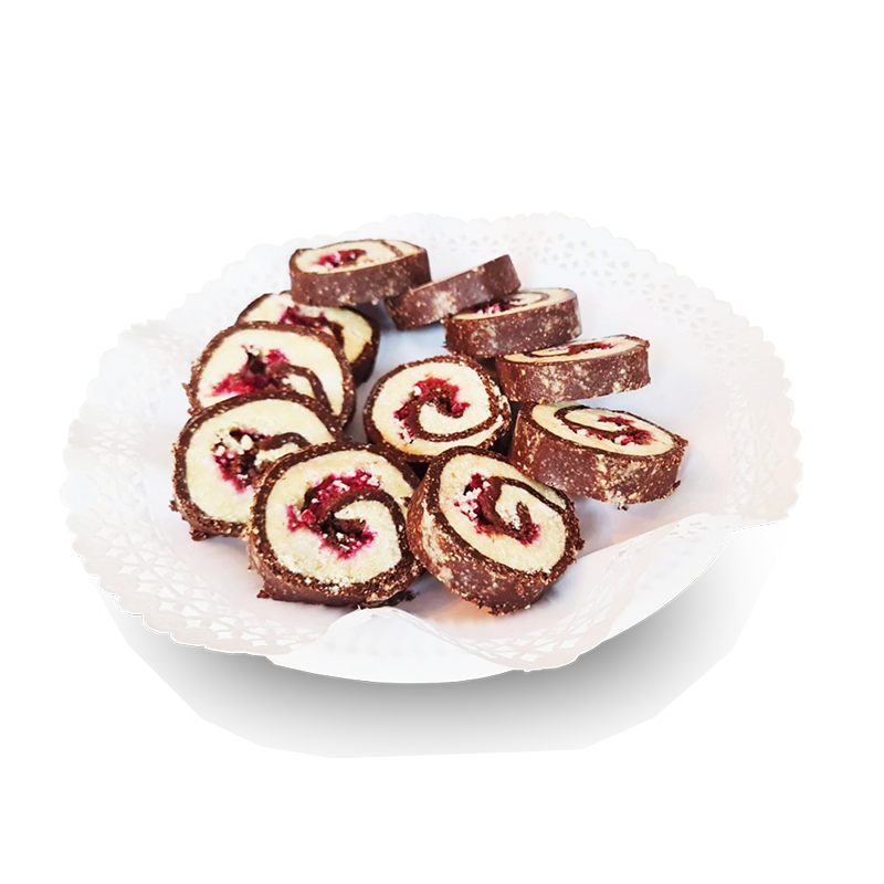 CONȚINE: caju, miere naturală, fulgi de cocos; cacao, zmeură (produs congelat), ulei de cocos presat la rece ecologic.